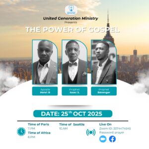 #UnitedGenerationMinistry #PowerOfTheGospel #LiveOnZoom #Faith #ApostleHenriB #ProphetIsaacS #ProphetBerengerS
